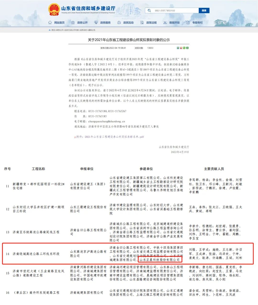 近日,乐鱼在线注册参建的“济南绕城高速公路二环线东环段项目”荣获2021年度山东省工程建设泰山杯奖!