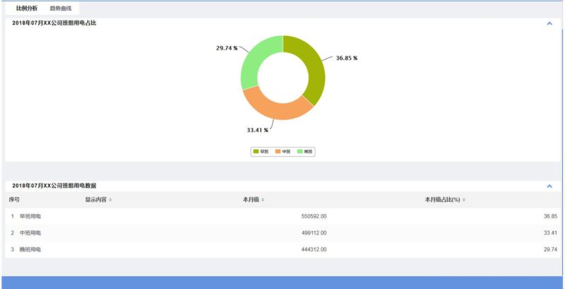 功能介绍:实现企业分类、分区域、分班组、分生产类型等方面的能耗对比分析、变化趋势分析,以及能耗数据的指标分析等功能。